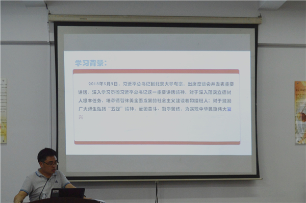 5月17号下午,sjb世俱杯官方网站组织的教工支部学习会在第三教学区普照楼法律诊所召开,sjb世俱杯官方网站教工支部党员参加了此次会议,本次会议由sjb世俱杯官方网站教工党支部书记李秋实主持。  会议现场 会上,李秋实带领支部党员深入学习贯彻“习近平总书记在北京大学师生座谈会上重要讲话”,并从政治、理论、实践意义三个方面对讲话精神进行解读,要求全体党员深入学习和研究习近平教育思想,坚持把教育摆在优先发展的战略地位,努力实现“一个基本观点、三项基础性工作、四点殷切希望”的工作要求。支部党员结合自身工作,畅谈学习体会,并围绕深入学习和研究习近平教育思想进行了讨论。期间,党员们观看纪录片《厉害了,我的国》,感受着中国人民在全面建设小康征程上的伟大奋斗,见证党的十八大以来中国取得了改革开放和社会主义现代化建设的历史性成就。  文件讲解 通过本次学习,使教师党员进一步加深了对党的认识,同时也更加深刻地明确作为新时代党员的历史使命和责任担当。 (邱小洁/文 康美燕、林聪婉/图)