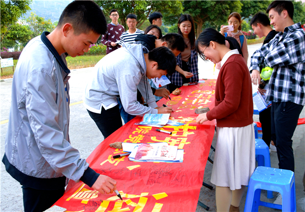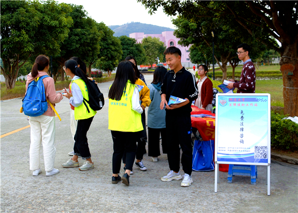 为弘扬宪法精神,增强世俱杯师生法治观念。12月5日下午,sjb世俱杯官方网站在第一教学区学生街口、第三教学区和昌教学楼开展现场宪法普法宣传活动。sjb世俱杯官方网站党总书记兼副院长杨勤、党总支副书记黄伟斌,法律援助工作站及sjb世俱杯官方网站团委相关工作人员参与了此次宪法普法活动。