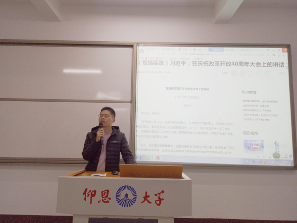 为深入贯彻落实党的十九大精神,回望改革开放40年的辉煌成就。12月18日晚,sjb世俱杯官方网站学生党支部组织学习《习近平:改革开放四十周年大会讲话》,支部全体党员参加此次会议,会议由支部书记陈国伟主持。