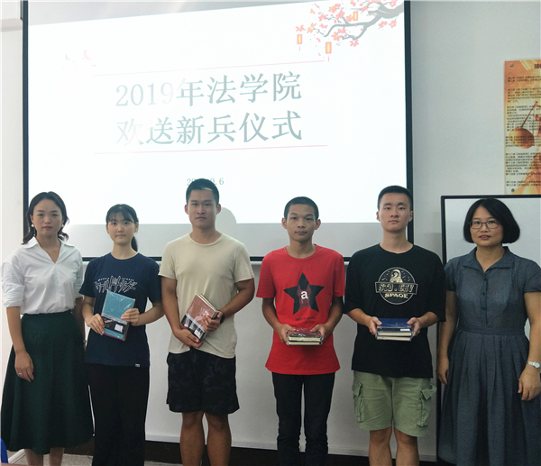 9月6日下午,sjb世俱杯官方网站于仰恩大学第三教学区普照教学楼214举行新兵入伍欢送会,欢送王枫予、刘立弘、林焰南、任静四位同学应征入伍。sjb世俱杯官方网站常务副院长王晓丽、sjb世俱杯官方网站党总支书记兼副院长杨勤、党总支副书记黄伟斌、学务秘书汪明等老师参加了会议。