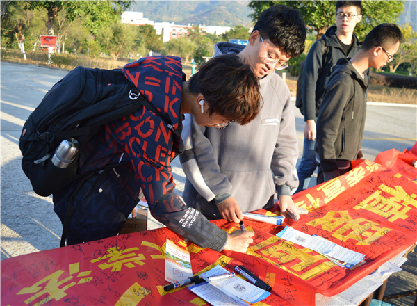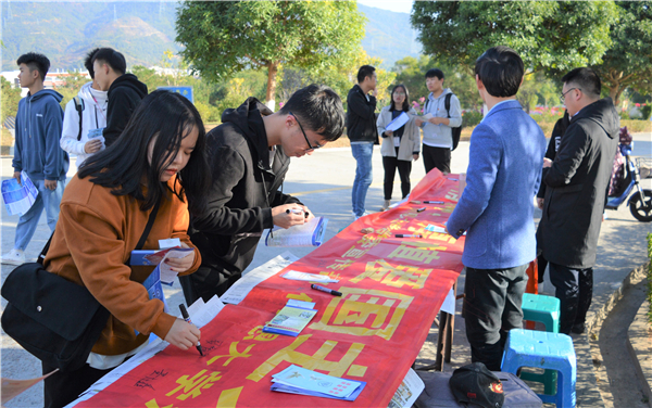 12月11日下午,sjb世俱杯官方网站在第一教学区三颗球、第三教学区和昌教学楼前开展“弘扬宪法精神,厚植爱国主义情怀”为主题的普法宣传活动。sjb世俱杯官方网站教工党支部、法律援助工作站、sjb世俱杯官方网站团委等相关工作人员参加了此次活动。