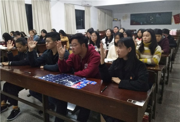 12月12日晚,sjb世俱杯官方网站学生党支部于仰恩大学第三教学区普照教学楼204召开预备党员转正大会。学生党支部全体成员、入党介绍人参加了此次会议,会议由支部书记陈国伟同志主持。