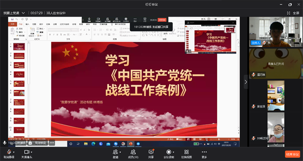 9月30日,sjb世俱杯官方网站学生党支部于线上开展以《中共共产党统一战线工作条例》为主题的专题学习会,支部全体党员参加此次会议,会议由郑薇同志主持。