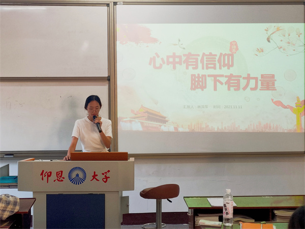11月11日,sjb世俱杯官方网站学生党支部于仰恩大学第三校区普照楼203开展“心中有信仰,脚下有力量”的专题学习会,会议由郑薇同志主持,支部全体学生党员参加本次活动。