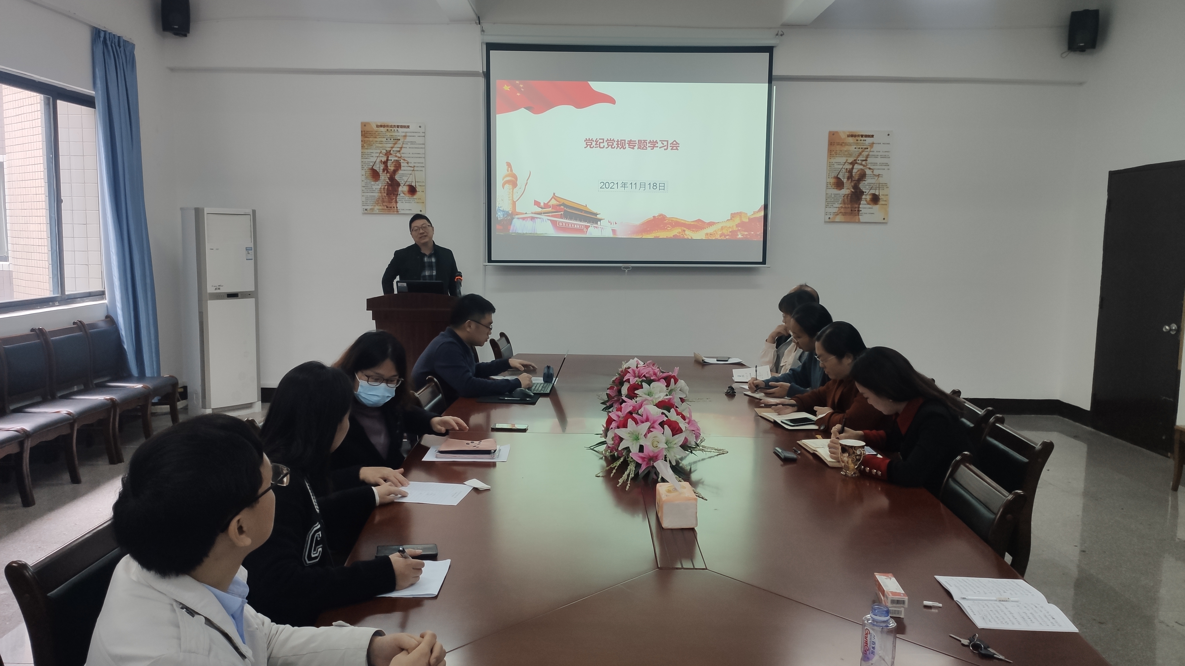 为进一步增强党员的党规党纪意识,自觉做到守纪律、讲规矩,知敬畏、存戒惧,发挥党员先锋模范作用,根据《仰恩大学2021年落实全面从严治党和党风廉政建设工作要点》要求,为加强对党员教师的党纪法规教育,进一步提高遵守党纪法规的意识,把纪律挺在法律前面,在广大党员教师队伍中营造一个学法知法守法的良好氛围,2021年11月18日上午,我院开展“学习党纪党规法律法规”专题教育活动会议。