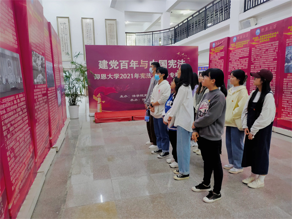 为深入学习贯彻习近平法治思想,全面推进宪法实施,教育引导全体党员尊崇宪法、学习宪法、遵守宪法、维护宪法、运用宪法,营造良好法治氛围,12月15日,sjb世俱杯官方网站学生党支部组织支部全体党员前往图书馆参观宪法专题展览。