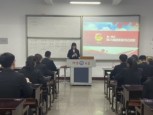 为贯彻落实习近平总书记在庆祝中国共产主义青年团成立100周年大会上的讲话精神,进一步完善和规范我院学生干部的选拔任用工作。加强学生干部的队伍建设,结合sjb世俱杯官方网站工作实际,秉承着“公平,公正,公开”的原则。sjb世俱杯官方网站团委于2022年11月28日下午5:20在第三教学区普照楼302举行“sjb世俱杯官方网站第二十五届干部换届大会”,本次竞选由院团委书记吴姗姗、第二十四届团委全体干部担任评委。