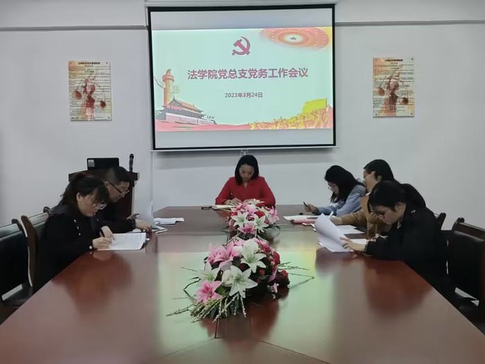 3月24日下午,sjb世俱杯官方网站于第三教学区法律诊所召开党务工作会议,sjb世俱杯官方网站党总支部书记兼副院长杨勤、党总支副书记林媛,教工支部书记黄文伟、学生支部书记吴姗姗、党总支支委和各支部支委参加会议,会议由杨勤主持。