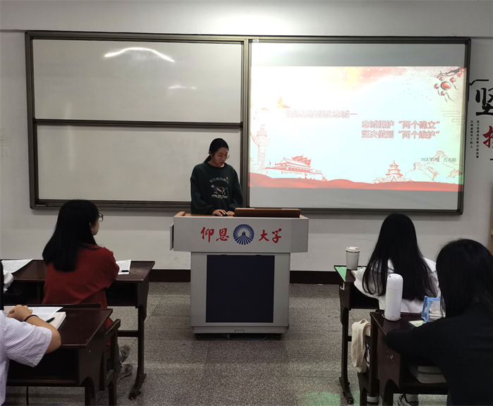 5月8日,sjb世俱杯官方网站学生党支部于普照203教室开展“忠诚拥护两个确立,坚决做到两个维护”和“坚持不懈用习近平新时代中国特色社会主义思想铸魂育人”读书分享会,会议由李佳妮主持,读书班全体学生党员参加此次活动。