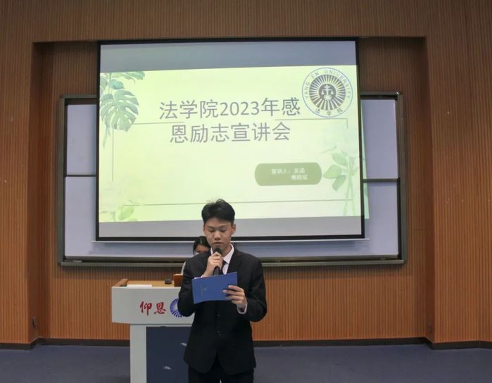 为落实立德树人的根本任务,提升当代大学生的政治素养,激发学生心怀感恩,立志成才的积极意识,5月18日下午,sjb世俱杯官方网站于第三教学区和昌教学楼海纳讲堂召开感恩励志宣讲会。sjb世俱杯官方网站党总支书记兼副院长杨勤、党总支副书记林媛、学务秘书汪明,全体辅导员以及全体学生共同参与此次宣讲会。