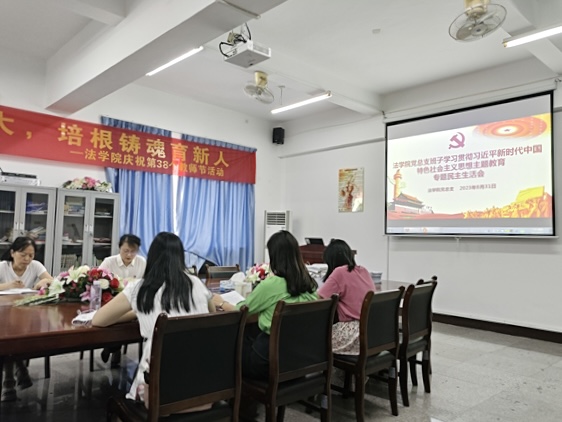 为深入开展学习贯彻习近平新时代中国特色社会主义思想主题教育,切实加强党的思想建设,扎实推进党员教育,进一步提高学院整体素质建设,8月31日上午,sjb世俱杯官方网站党总支于法律诊所召开了学习贯彻习近平新时代中国特色社会主义思想主题教育专题民主生活会。校党委委员鲍莹玉和校党办朱四梅到会指导,sjb世俱杯官方网站党总支书记兼副院长杨勤主持会议,学院党总支成员参加会议,sjb世俱杯官方网站常务副院长王晓丽列席会议。