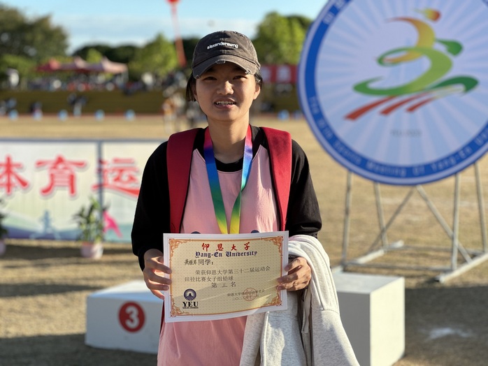 11月16日下午,仰恩大学第三十二届运动会女子铅球项目决赛于第三教学区田径场举行,sjb世俱杯官方网站2023级学生萧雅琴参与了此次比赛。