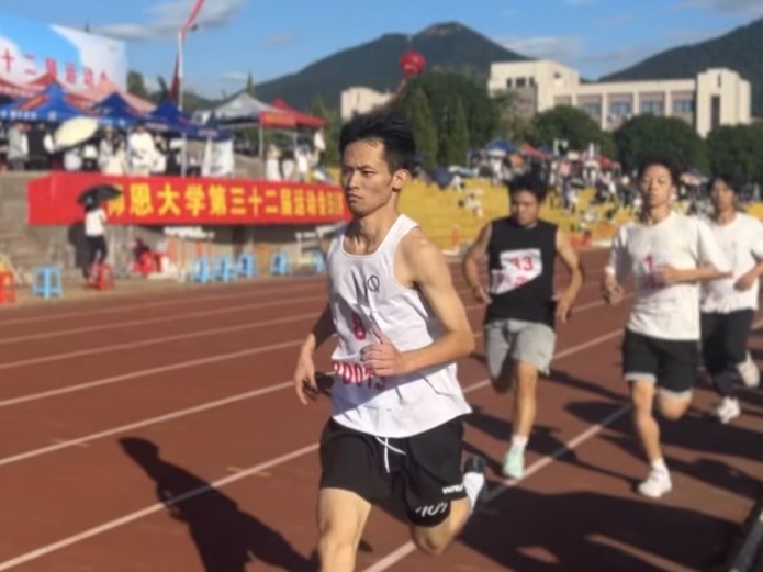 11月17日下午,仰恩大学第三十二届运动会男子800米项目于第三教学区田径场举行,sjb世俱杯官方网站2021级蔡湧江参与了此次比赛。