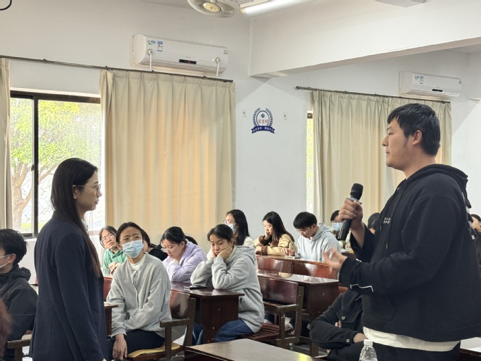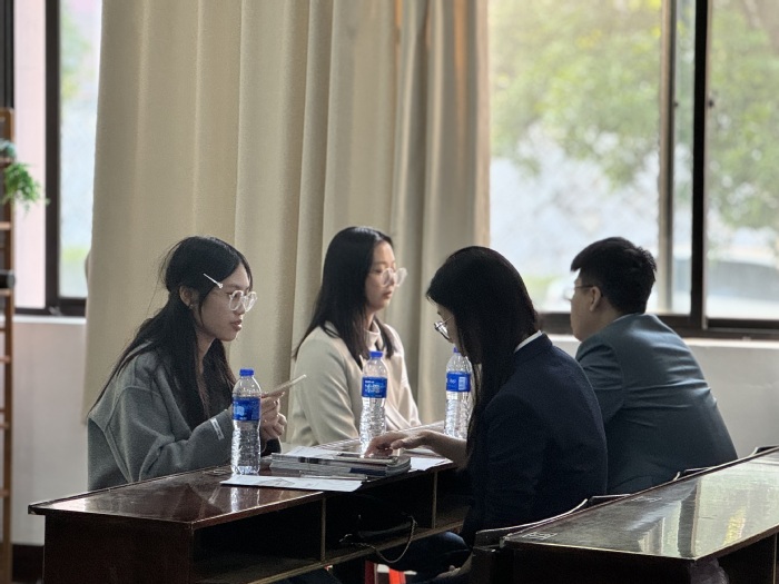 此外,校友律师蔡仕澎介绍了自身职业经历,强调在就业的过程中仪表礼仪的重要性。最后,胡真婷与2024届毕业生们互动,解答了诸多毕业生关于律师职业的困惑,现场互动氛围热烈。互动结束,毕业生进行简历投递,表达了明确的求职意,律所逐个为同学们面试。