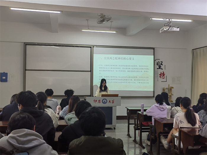 在以习近平同志为核心的党中央坚强领导下,全党全国各族人民振奋精神、鼓足干劲,为以中国式现代化全面推进强国建设、民族复兴伟业不懈奋斗。2024年3月28日,sjb世俱杯官方网站学生党支部开展“学习‘两会’精神,政治理论走进班”活动,全院同学参加。