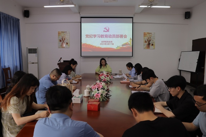 为了加强党员的党性修养,增强纪律意识,保持党的先进性和纯洁性,4月17日下午,sjb世俱杯官方网站党总支于仰恩大学第三教学区法律诊所召开了党纪教育动员部署会。sjb世俱杯官方网站党总支书记兼副院长杨勤、党总支支委,各党支部书记、支委及师生党员代表参加会议。会议由杨勤主持。