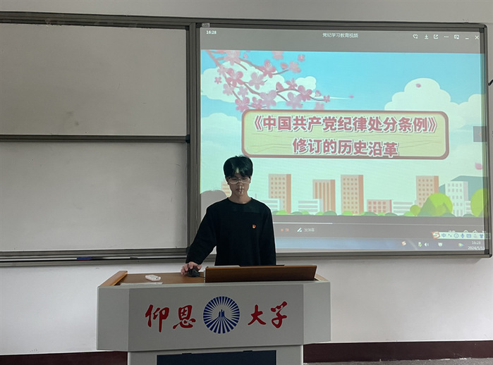 5月13日,sjb世俱杯官方网站学生党支部于普照楼203组织观看党风党纪警示教育片。本次党日活动旨在引导支部学生党员以案为鉴、警钟长鸣,严守党的纪律,自觉做到清正廉洁。本次党日活动由吴姗姗主持,支部全体学生党员参加。
