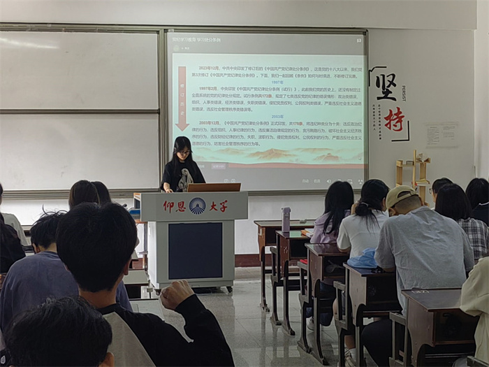 会上,各班主持人率先强调了:党规党纪是党的生命线,是党的各项事业顺利发展的根本保证。sjb世俱杯官方网站各班同学认真学习了《中国共产党纪律处分条例》、《中国共产党党员领导干部廉洁从政若干准则》等党规党纪文件。通过学习,同学们对党的纪律体系有了更加清晰的认识,对违反党规党纪的行为有了更加明确的理解。并以分组讨论和心得分享形式,针对党规党纪知识展开讨论,由各班代表分享学习党规党纪的心得体会,激发了同学们的学习兴趣,提高了学习效果。