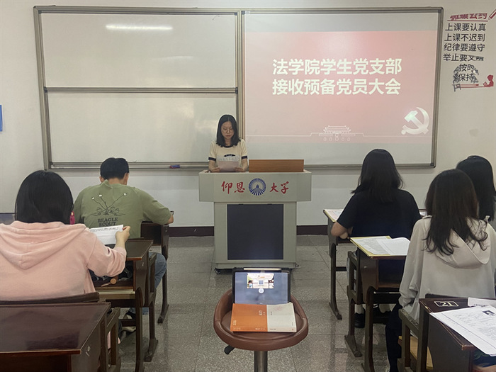 5月29日,sjb世俱杯官方网站学生党支部于普照楼202教室召开预备党员接收大会,会议由书记吴姗姗主持,支部全体党员到场参加。