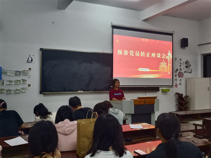 5月30日,sjb世俱杯官方网站学生党支部于普照203教室召开预备党员转正群众座谈会,会议由吴姗姗主持,sjb世俱杯官方网站各班团支书和群众代表参加此次活动。