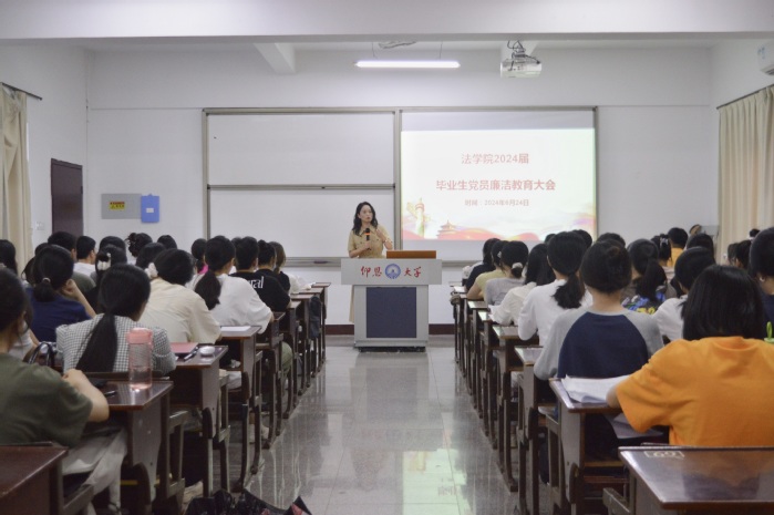 为加强廉洁意识,提高党性修养,铸就廉洁品格,助力毕业生党员在新的岗位上书写时代华章。6月24日,sjb世俱杯官方网站学生支部于普照楼204召开毕业生党员廉洁教育大会,由sjb世俱杯官方网站党总支书记兼副院长杨勤主持,sjb世俱杯官方网站党总支副书记林媛、sjb世俱杯官方网站学生党支部书记吴姗姗出席,全体毕业生党员参加。