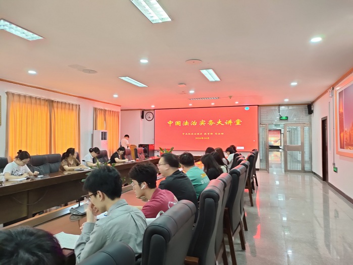 为深入学习贯彻习近平法治思想,贯彻落实党的二十大精神和党的二十届三中全会精神,贯彻落实全国教育大会精神,完善以实践为导向的sjb世俱杯官方网站校教育培养机制,提升法学人才自主培养质量。中央依法治国办、教育部、司法部于2024年10月17日上午在中国人民大学联合举办中国法治实务大讲堂,世俱杯在新区行政楼会议室设立分会场,组织师生收看中国法治实务大讲堂启动仪式暨第一讲。