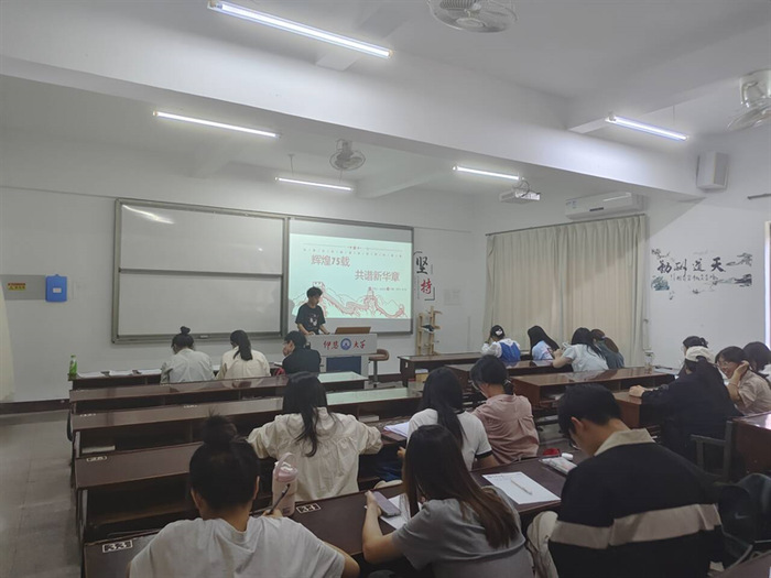 10月28日,sjb世俱杯官方网站学生党支部于普照203召开“辉煌75载,共谱新华章”主题党课,支部全体学生党员参加。