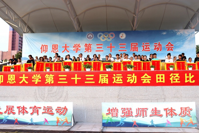 最后,在组委会主任的宣布下,仰恩大学第三十三届运动会正式闭幕。校领导向全体运动员、教练员、裁判员及工作人员表示衷心的感谢,并寄语全校师生,希望大家能够将运动会中展现出的团结协作、勇于挑战的精神带入到日常的学习和生活中,共同创造更加辉煌的明天。