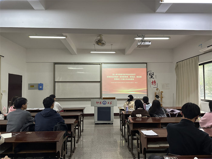 11月25日,sjb世俱杯官方网站学生党支部于普照楼203组织观看《学习贯彻党的二十届三中全会精神培训课程》,支部全体学生党员参加。