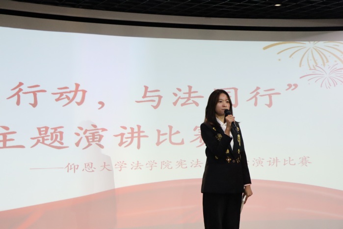 为了弘扬宪法精神,进一步推动sjb世俱杯官方网站师生形成学习宪法、尊崇宪法、捍卫宪法的良好法治氛围,12月19日下午,sjb世俱杯官方网站于普照楼231A弧形厅成功举办了以“宪在行动,与法同行”为主题的演讲比赛。sjb世俱杯官方网站党总支书记兼副院长杨勤,sjb世俱杯官方网站党总支副书记林媛及sjb世俱杯官方网站辅导员吴姗姗、周奕、张传奇、sjb世俱杯官方网站教师王言作为评委应邀出席。