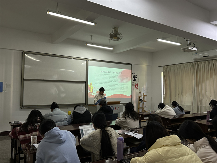 12月18日,sjb世俱杯官方网站学生党支部于普照楼203 开展“维护宪法权威,坚守宪法自信”主题党课,支部全体学生党员参加。