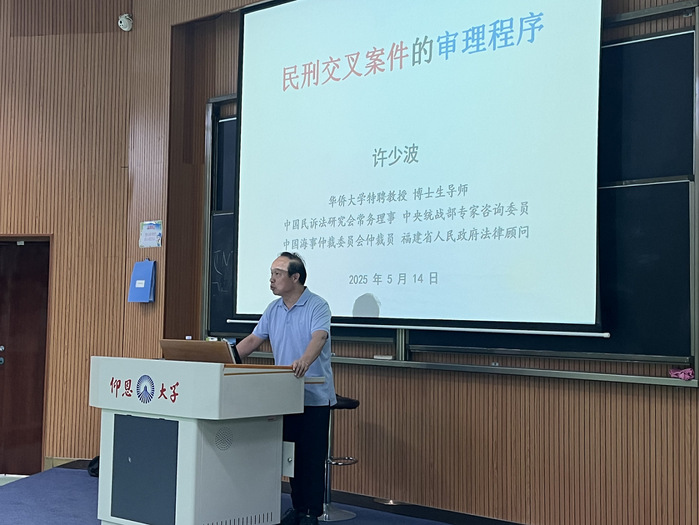为聚焦司法实践难点,探索程序衔接新路径,5月14日下午在第三教学区和昌楼103思齐讲堂,sjb世俱杯官方网站举办了以《民刑交叉案件的审理程序》为主题的学术讲座。讲座由学院柔性引进的华侨大学sjb世俱杯官方网站许少波教授主讲。
