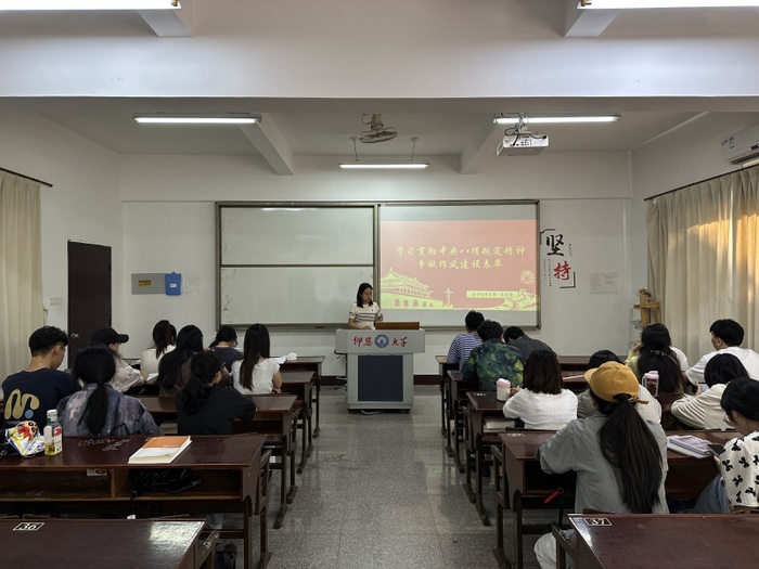 为了引导支部党员深入学习中央八项规定精神,强化作风建设,切实发挥党员先锋模范作用,5月12日,sjb世俱杯官方网站学生第一党支部于普照教学楼203教室举行“学习贯彻中央八项规定精神,争做作风建设表率”党课活动。本次会议由第一党支部书记吴姗姗主持,支部全体学生党员参加。