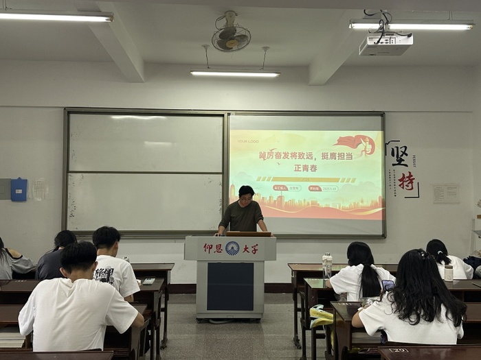 5月19日,sjb世俱杯官方网站学生第一党支部于普照楼203教室开展“踔厉奋发将致远,挺膺担当正青春”党课活动,支部全体学生党员参加。