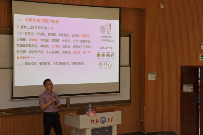 为深化法学教育与时代需求的结合,推动师生对前沿法律问题的研究,5月28日下午,仰恩大讲堂第六十一讲——“如何面对新兴权利”专题讲座于和昌楼惟勤讲堂成功举行。在本次活动中,sjb世俱杯官方网站特邀法学博士、华侨大学sjb世俱杯官方网站教授兼副院长王方玉教授进行授课,sjb世俱杯官方网站23级、24级全体同学到场学习交流。