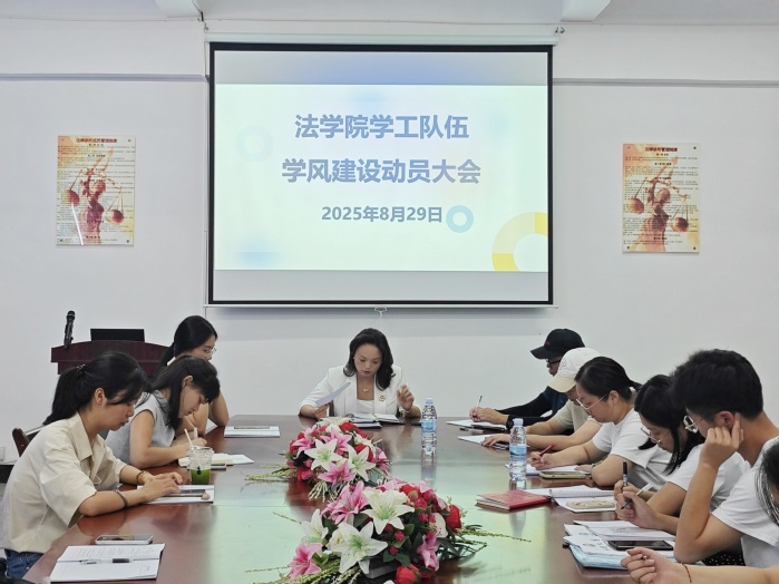 为深入贯彻落实立德树人根本任务,进一步加强学风建设,全面提升教育教学质量,8月29日,sjb世俱杯官方网站于仰恩大学普照楼法律诊所召开学工队伍学风建设动员大会。sjb世俱杯官方网站党总支书记兼副院长杨勤、sjb世俱杯官方网站党总支副书记林媛,以及全体班主任、辅导员、学务秘书齐聚一堂,共同擘画学风建设新蓝图。本次会议由sjb世俱杯官方网站党总支书记兼副院长杨勤主持。