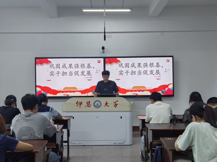 9月22日,sjb世俱杯官方网站学生第二党支部于普照楼203教室开展“巩固成果强根基,实干担当促发展”党课活动,支部全体学生党员参加。