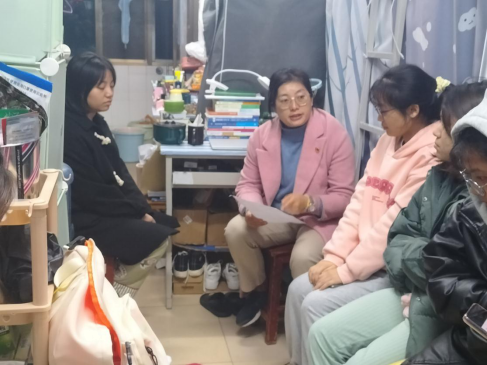 在与同学们的交流中,领导老师为同学们强调了以下几点。一是思想政治教育。同学们应当完成好每周的青年大学习任务,提高思想觉悟,在日常上课过程中,同学们应做到不迟到,不早退,不旷课,做一个积极向上的大学生。第二,老师们叮嘱大家一定要注意用电安全,不要使用违规电器,不要在校外租房、晚归、不归。他们还强调了在电信安全方面,不要相信刷单,不要相信有天上掉馅饼这样的好事。最后,领导老师们表示:在疫情依然严峻的当下,我们依旧应当不大意,不松懈,每晚寝室群里的拍照打卡不能停,严格落实好疫情防控工作。