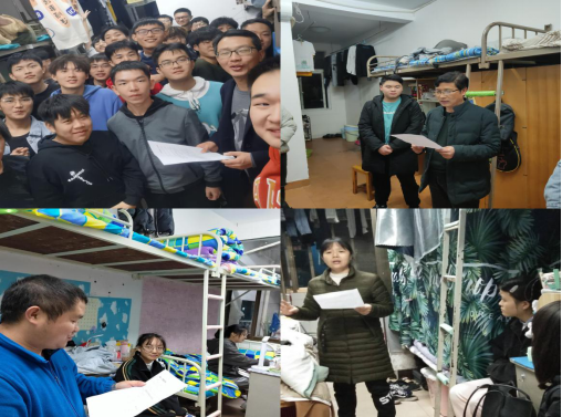 为更好地了解同学们的宿舍生活情况,加强其思想教育,提高安全意识,11月30日晚,材料与环境工程学院党总支书记谭峰亮,副书记陈佩君以及材环院全体班主任在学生干部的陪同下前往学生寝室开展思想教育及安全教育工作。