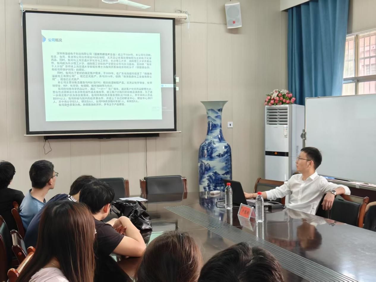 招聘会上,企业代表卢意鹏详细介绍了企业发展历程。作为成立于 2004 年的国家高新技术企业,溢诚电子专注于 PCB 湿制程解决方案研发生产,核心产品化学镍金、OSP 等工艺技术国内领先,与长三角、珠三角地区 20 余家龙头企业建立深度合作。随后,卢意鹏对此次招聘的岗位进行逐一说明。在互动环节,同学们围绕专业契合度、职业发展和薪资福利等积极提问,与企业代表深入交流。