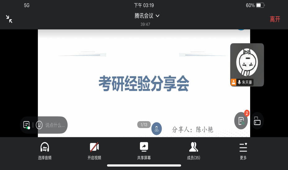 会议伊始,王新辉副书记作考研动员,鼓励同学们借助本次分享明确方向、科学备考,为整场活动拉开序幕。随后,2025届考研上岸优秀学子胡梦多、蓝文强、董靓莲、陈小艳依序分享备考经验。他们结合自身考研经历,围绕院校专业选择、考研备考规划、考研资料推荐、心态调整、复试技巧等内容展开深入探讨和交流,以清晰的逻辑为同学们梳理出针对性备考思路。