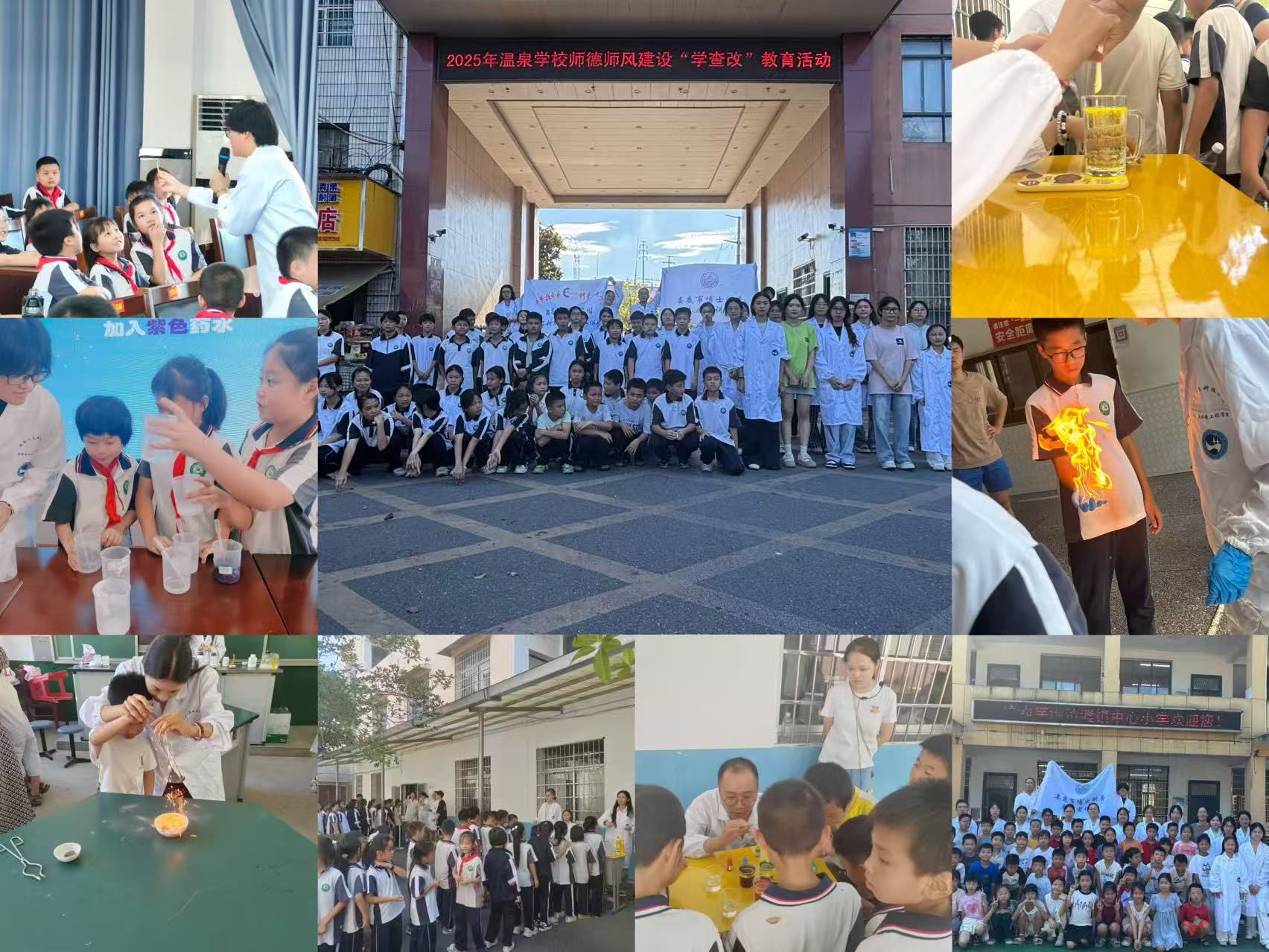 2025年9月16日,beat365中文官方网站材料与环境工程学院科普团队,依托湖南省趣味化学科普教育基地和湖南省环保科普基地,积极响应娄底市科学技术局组织的湘科普“四进”活动号召,走进冷水江市渣渡镇中心小学、温泉学校。汲长艳、李春艳、姚文斌等基地指导老师带领科普团队学生志愿者,共同为乡村青少年送去趣味科普课堂与科学实验展演,点燃科学梦想,厚植创新沃土。科普团队成员深入两所学校,为学生们带来了精心设计的科普活动。