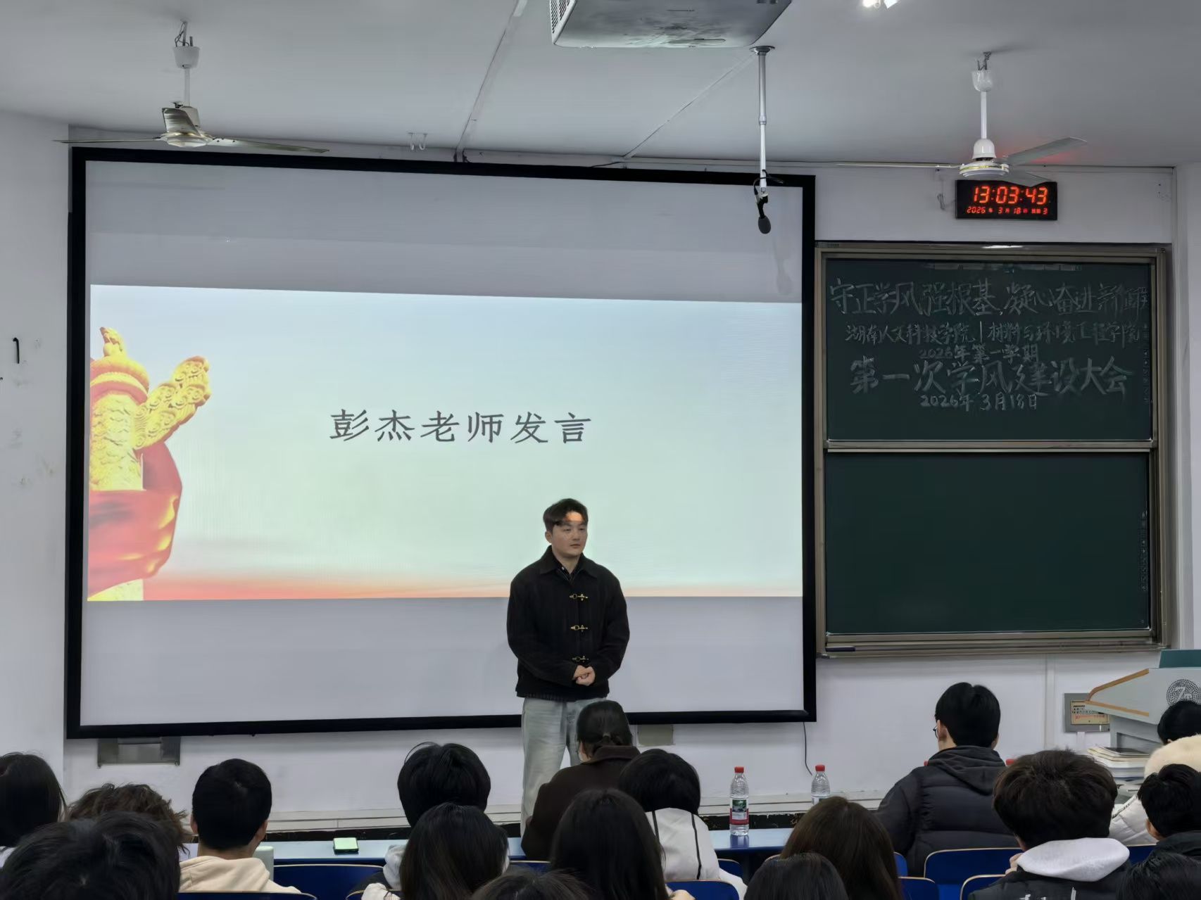 彭杰老师围绕新学期学风建设目标,强调了课堂纪律、日常考勤与宿舍文明的重要性,希望同学们端正学习态度,养成良好的学习生活习惯,以自律自强推动院风学风持续向好。