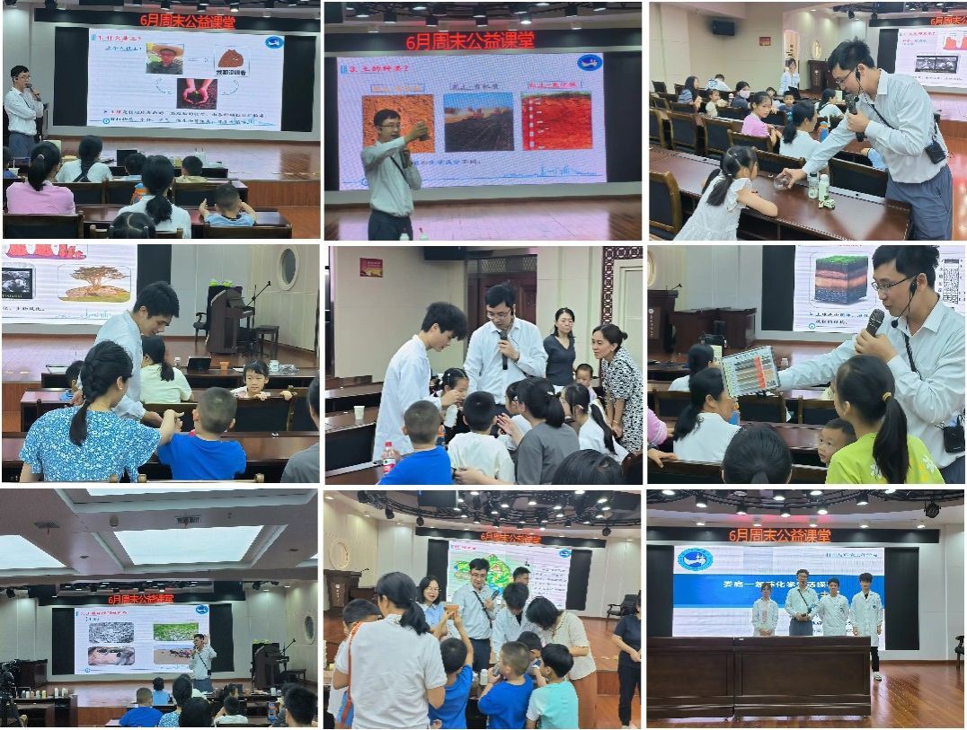 首先,张晓峰博士介绍了土壤的定义及作用,通过现场提问、图片展示、现场互动等活泼有趣的环节,讲解了物理风化、化学风化和生物风化过程,让现场家长和小朋友在通俗易懂的语言中知晓土壤的不同成因。