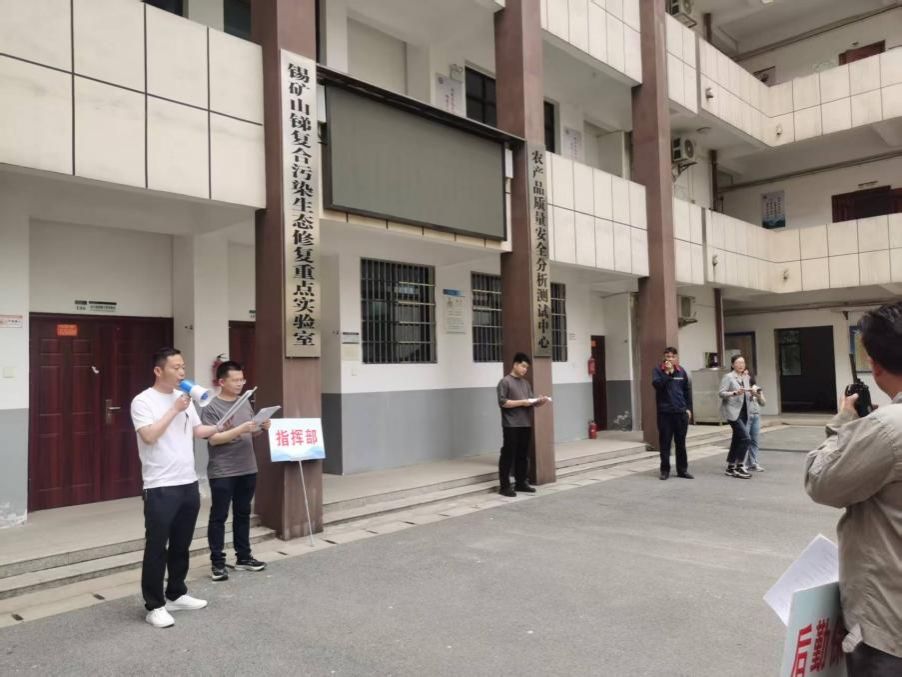 本次演练由学校教务处、材环院、农生院、能机学院等单位协同组织参与。娄底市浩天环保科技有限公司指导,各学院师生代表到场观摩。材环院副院长彭伟才担任本次演练总指挥,材环院、农生院相关负责人分别担任现场指挥和演练总调度。