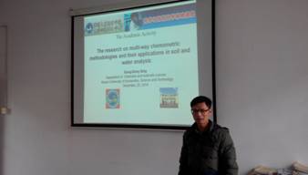 2014年12月23月下午,beat365中文官方网站化学与材料科学系卿湘东和钟洪彬博士在化学系多闻楼四楼409会议室进行了两场学术报告会。化学与材料科学系党总支书记刘志成、主任胡传跃及全体教师出席。胡主任首先对卿湘东和钟洪彬博士进行了简要介绍。随后,卿博士对高维化学计量学算法及其在环境土壤和水体分析中的应用研究作了详细报告。其发展了一个新的四维校正算法,并使用了HPLC-DAD结合交替三线性分解二阶校正方法。钟博士就高容量高能量密度锂离子电池新型导电剂配方开发研究做了精彩的报告,并详细讲述了碳纳米管的添加量对锂离子电池高容量高能量密度的影响。卿博士和钟博士与在座的教师展开了积极的学术讨论并详细回答了现场提出的问题。会后,同行们纷纷表示通过此次讲座受益匪浅。