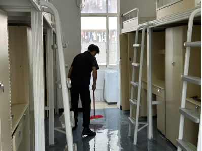 中午,阳光洒满校园,材料与环境工程学院的学生干部们手持清洁工具,满怀热情地集合于多闻楼前。在学院党总支的精心组织下,大家被分为若干小组,深入新生宿舍楼,开展迎新大扫除活动。大家分工明确,配合默契。有的负责清扫地面,有的细心擦拭门窗,还有的则忙着整理床铺和储物柜,每一个角落都不放过,力求为新生们打造一个干净、整洁、舒适的住宿环境。汗水浸湿了衣背,每一份努力都是对新同学最真挚的欢迎和祝福。