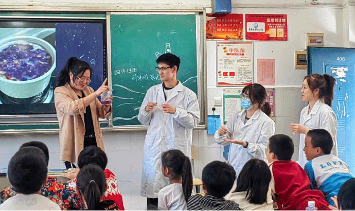 科教兴国,科普为先。为了在教育“双减”中做好科学教育加法,拓展学生视野,普及科学知识,提升科学素养,同时发挥大学生党员的作用,营造一个传播科学思想,弘扬科学精神的氛围。2024年10月23日,材料与环境工程学院学生第二党支部书记李晶,带领学生党员同志们积极行动,在娄底市第一小学四(4)班开展了以“科普进入校园——化学变色之旅”为主题的党日活动。