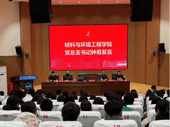 材料与环境工程学院党总支书记钟勇,副书记王新辉;体育学院党总支书记曾黎,副书记肖毅;组织委员李雷震、徐彬,学生党支部书记梁鑫、许琨,以及两个学院本期全体入党积极分子参加开班仪式,仪式由材料与环境工程学院党总支书记钟勇主持。