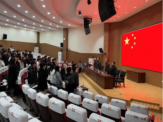 在庄严肃穆的氛围中,随着音乐的奏响,全体参会人员庄然起立,齐奏唱中华人民共和国国歌。激昂的旋律回荡在会场,每一个音符都深深触动着众人内心深处对祖国的炽热情感与赤胆忠诚,激扬起强烈的民族自豪感与使命感。